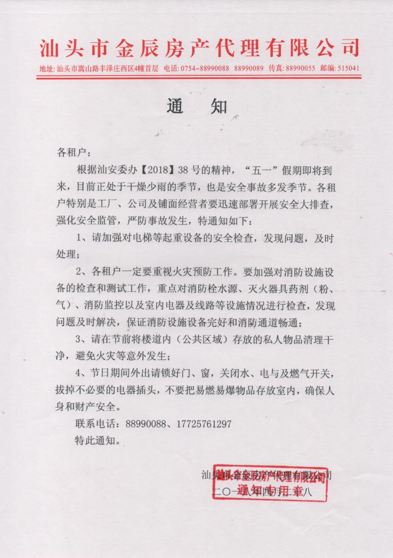 2018“五一”安全通知